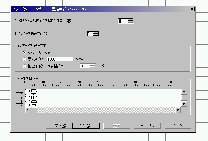 - インポートするケース数:通常「すべてのケース」→<次へ>