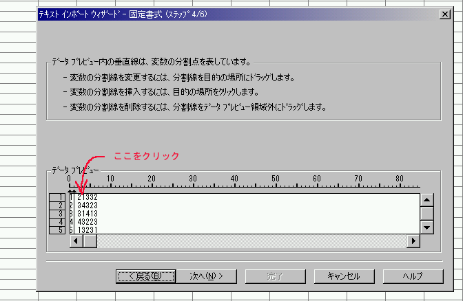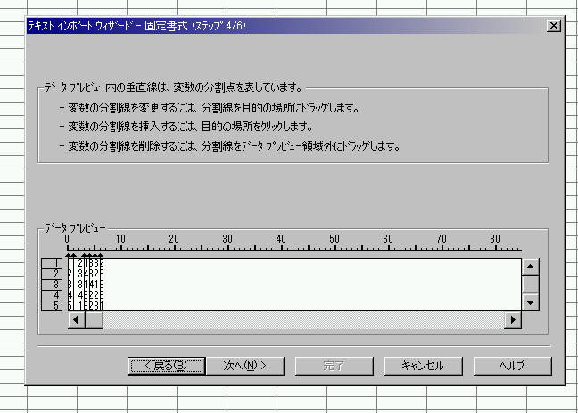 - 「開く」ボタンを押すと「テキストインポートウィザード」画面になる