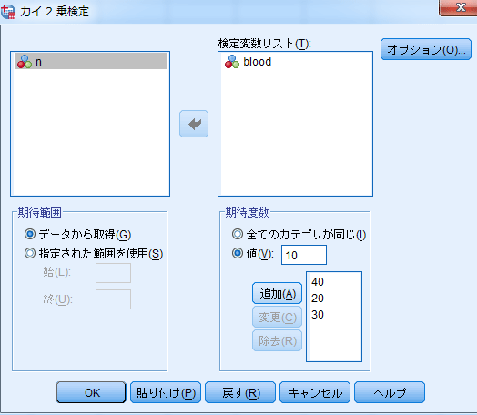 期待度数欄の「値」欄に期待確率を入力し「追加」する。